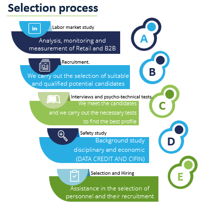 We carry out a consultancy to find the best profiles for the position according to your labor needs, in the time required by the company.